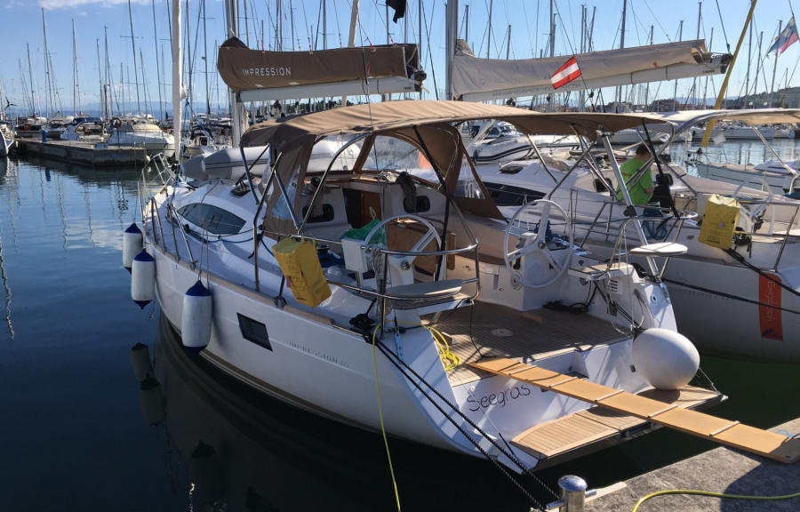 Die Segelboot Elan Impression 40 Seegras steht zum Chartern und Segeln in der nördlichen Adria in Istrien und im Kvarner ab Marina Izola in Slowenien zur Verfügung.